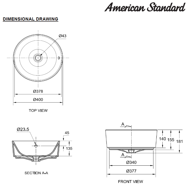 American Standard CL0509I Acacia Evolution Round Vessel Wash Basin