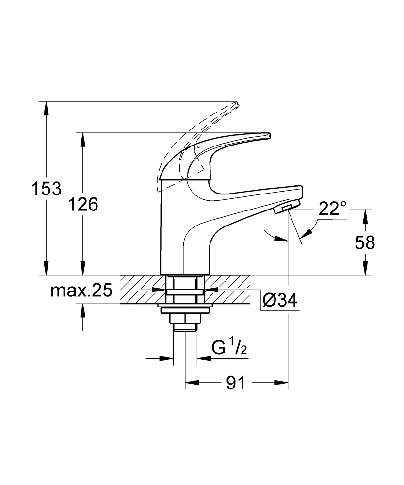 GROHE 32809000 BAUCURVE SINGLE-LEVER BASIN TAP (cold only)