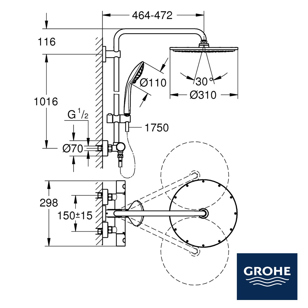Precision is at the heart of the GROHE Euphoria XXL shower system with thermostat, from its crisp, contemporary lines to its innovative features that put you in total control. Let the Euphoria Cosmopolitan 310mm head shower’s soft PureRain Spray soothe away stress. GROHE DreamSpray technology will ensure an even flow from every nozzle, and the arm of the head shower swivels through 180º for added versatility. The Euphoria 110mm Massage hand shower offers 3 different spray patterns to suit your mood: there’s a gentle Rain Spray, the water-efficient SmartRain and a revitalising Massage Spray. GROHE TurboStat technology means that the shower’s temperature will stay constant with no nasty fluctuations and a GROHE DropStop function prevents drips after you shut the shower off. GROHE EcoJoy reduces water usage without compromising on comfort. Family-friendly, it also features the GROHE SafeStop button which can limit the temperature to 38°C to prevent scalding and an Inner WaterGuide that keeps surfaces cool to the touch. Easy to clean, the SpeedClean silicone nozzles can be brushed free of limescale with just your finger, and the dazzling GROHE Starlight chrome finish is a scratch-resistant surface that will stay sparkling for years to come.