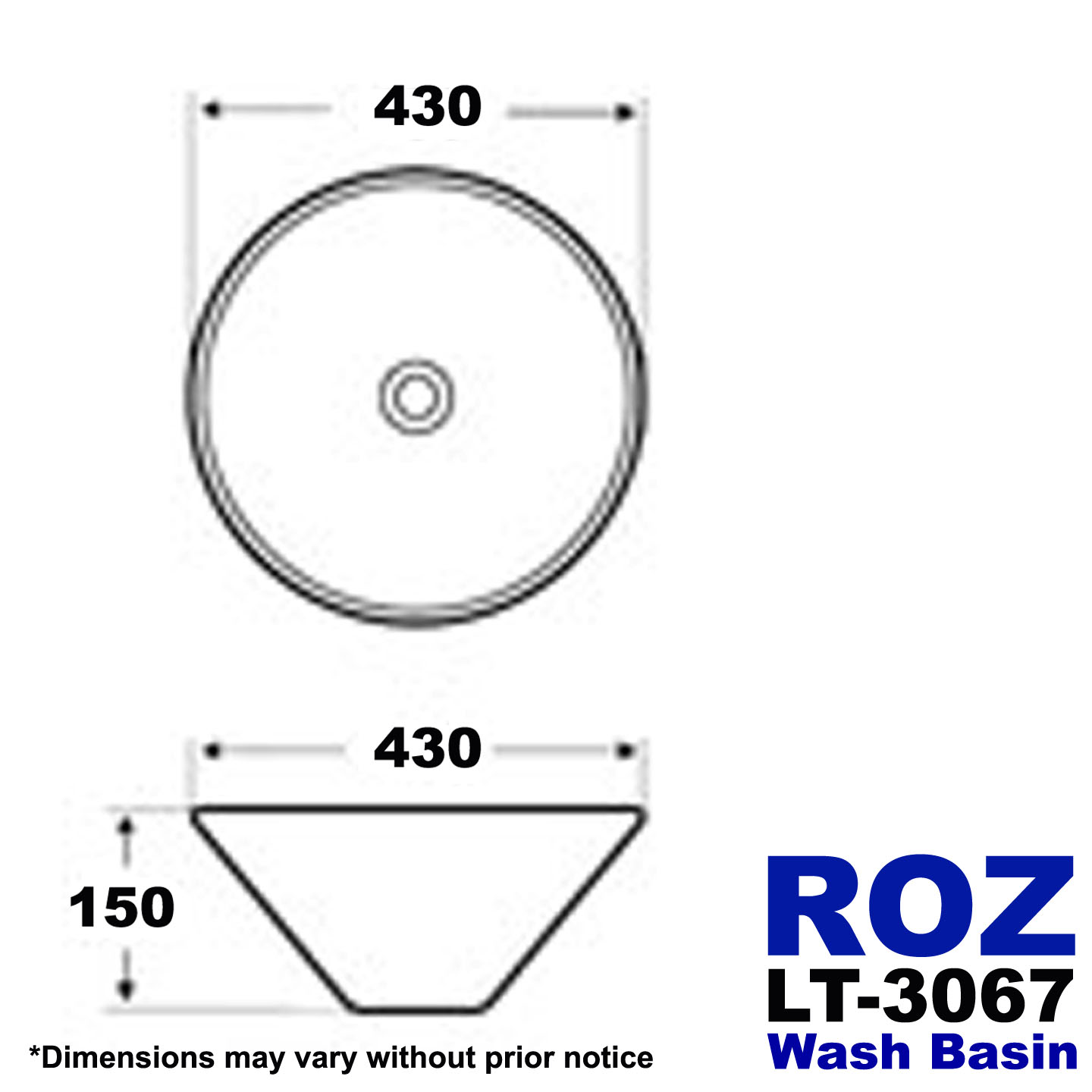 Roz Round Counter Top Basin 3067