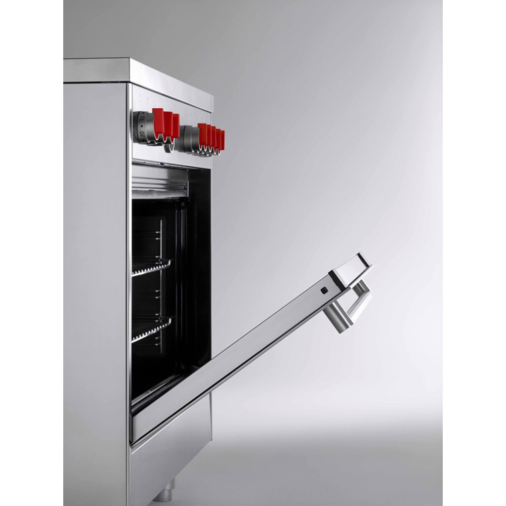 This single-oven cooker has a stainless-steel single-piece worktop with 5 aluminium burners, including a central high-performance dual wok burner with precise control from low simmer to high output. The electric oven is fan assisted and has 9 functions. Oven doors are triple-glass with a wide extractable inner glass. Products and packaging are 99% recyclable. Colours shown will vary depending on your screen settings and resolution.