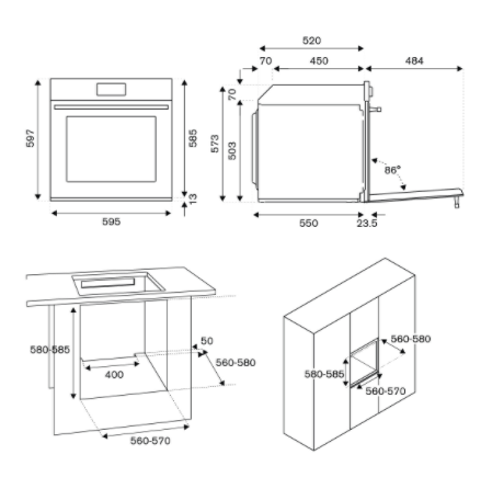 | Actual (W x D x H) : | 595 x 550 x 597 |