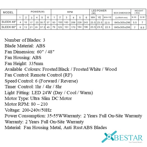Fan Dimension: 60” / 48″