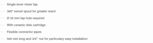 - 500 mm long and 3/8'' nut for particulary easy installation