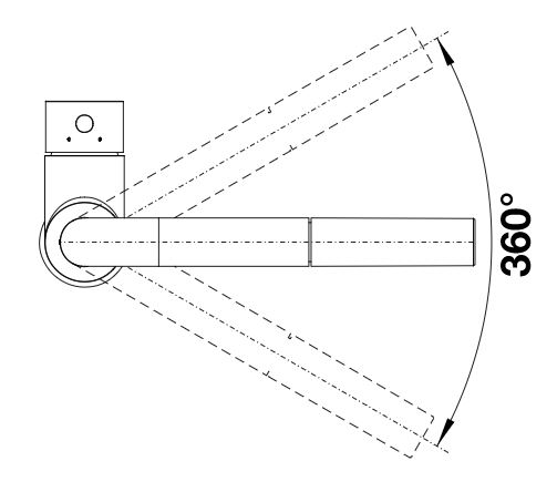 - Enlarged working radius thanks to the 360° swivel spout