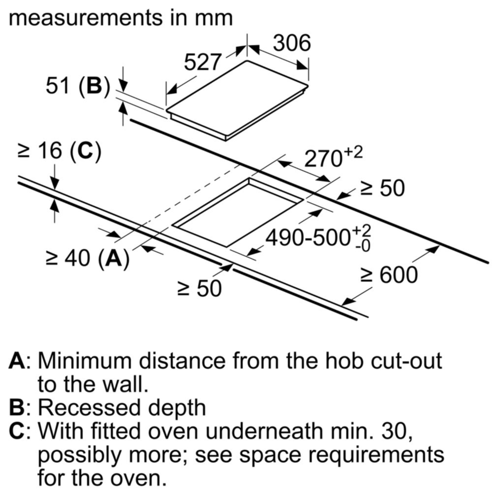 - Required niche size for installation (HxWxD mm) : 51 x 270 x 490-500