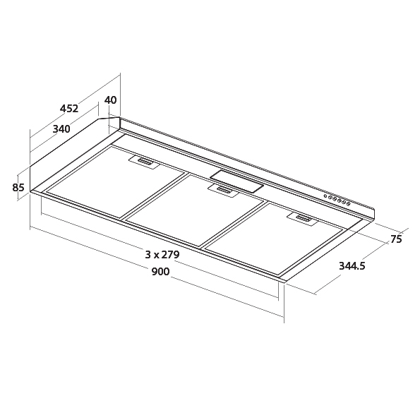 - Actual dimension: W900 x D452 x H85mm