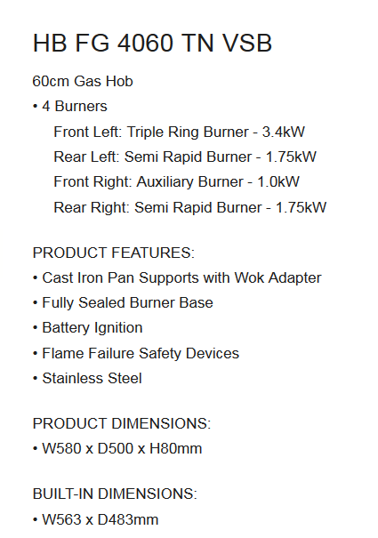 Cast Iron Pan Supports with Wok AdapterFully Sealed Burner BaseBattery IgnitionFlame Failure Safety Devices Stainless Steel
