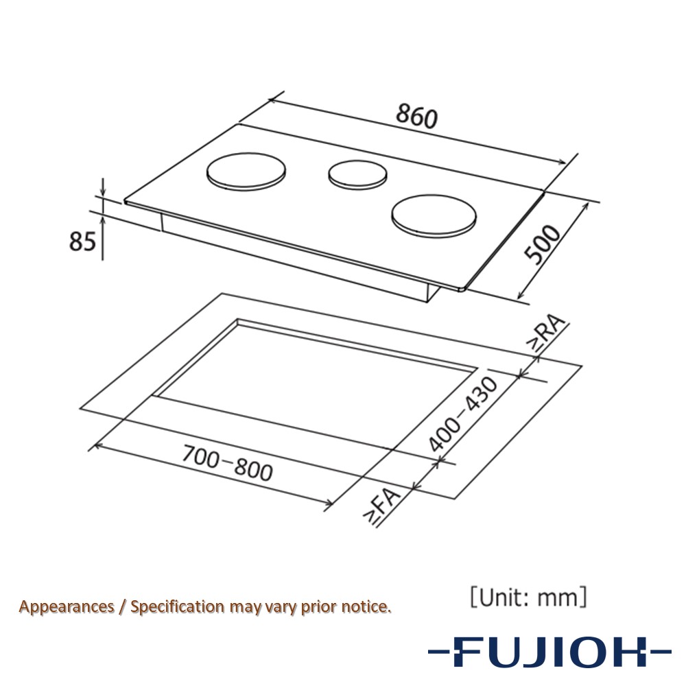 Fujioh Stainless Steel Hob uses one of the best grade of stainless steel to ensure durability, which is the SUS304 grade.