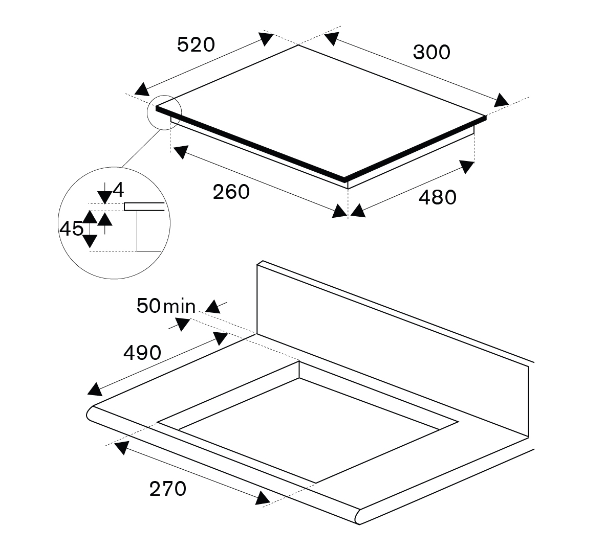 | Cut-Out (W x D x H) : | 270 x 490 x 55 |