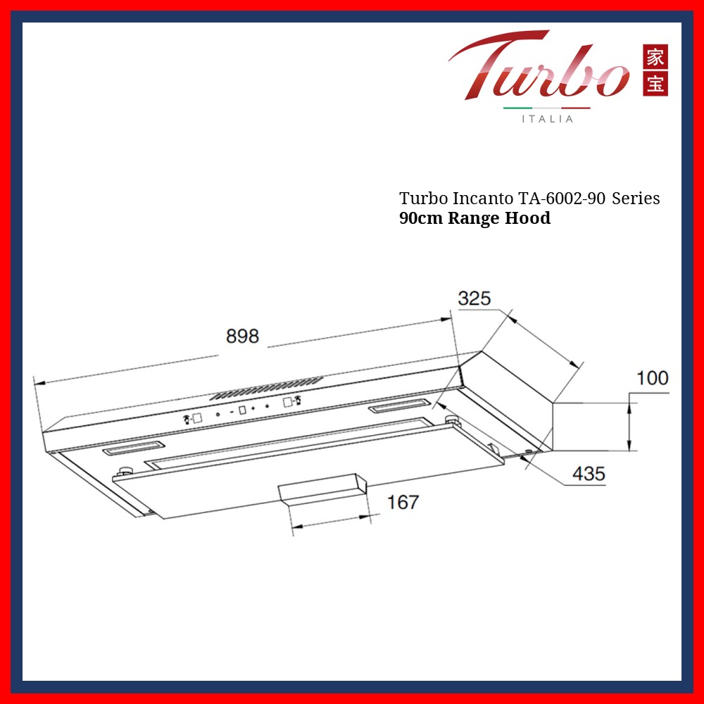Turbo Incanto TA-6002-90 Series 90cm Range Hood