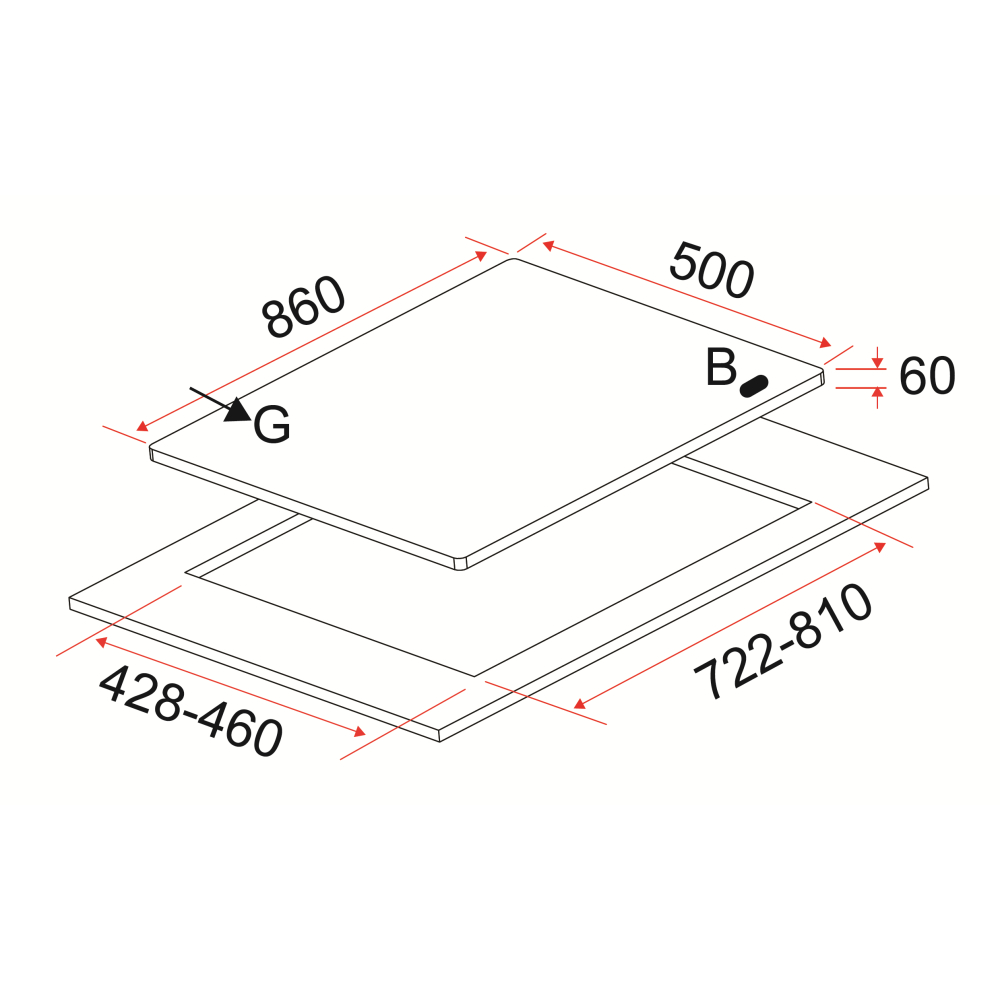 • W860 x D500 x H60mm