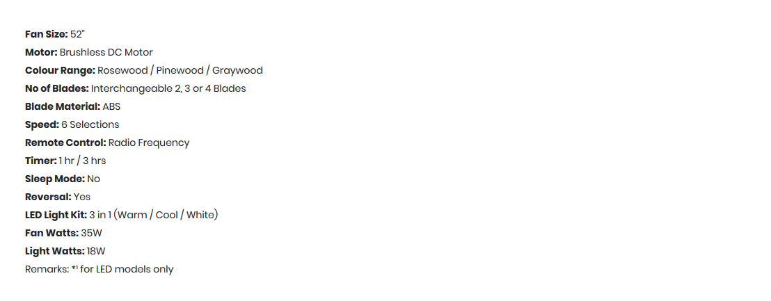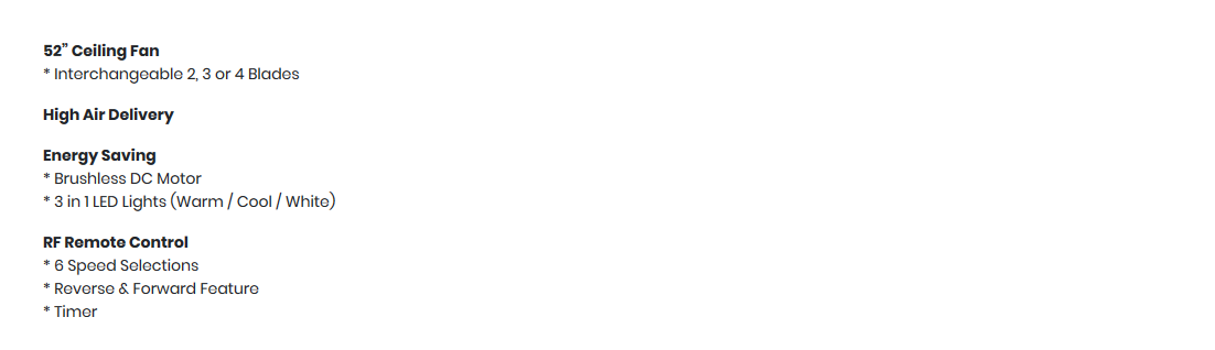 Fanztec FT-TWS-1 Ceiling Fan 52inch with Light option