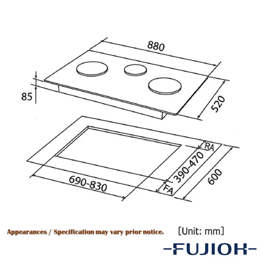 The Fujioh hob is made of the toughened black glass, also know as SCHOTT Glass.