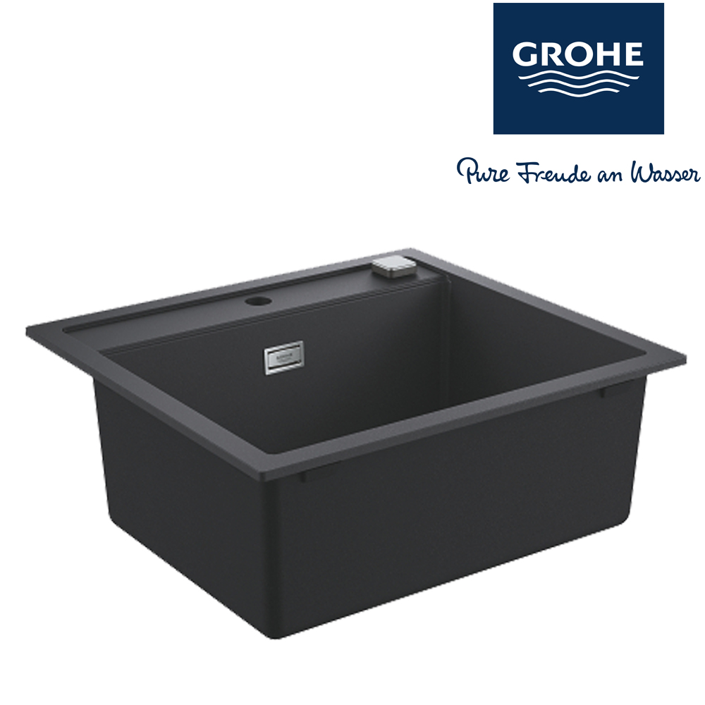 For a hardworking sink with maximum usability and modern looks, the GROHE K700 top-mounted composite sink is an easy decision to make. This top-mounted sink and drainer (56x50cm) has the advantage of being is fully reversible and is cast in an 80% quartz/20% acrylic resin and hardener composite material that will resist stains, scratches, heat and dents. The internal bowl depth is an ample 20cm. The seamless casting process gives it a flawless surface for fuss-free cleaning and maintenance, as well as 100% food hygiene. In addition, the sleek, modern Granite Black finish doesn’t react to UV light so will retain its deep hue through years of use. GROHE Whisper technology gives the composite construction excellent noise-reduction qualities under running water, while the automatic waste fitting – with its stylish rectangular excenter – has a remote control so you don’t have to put your hands in old dishwater to pull the plug. The GROHE QuickFix system makes installation quick and straightforward. Upgrade this sink with the addition of a smart GROHE push-excenter (40986SD0).