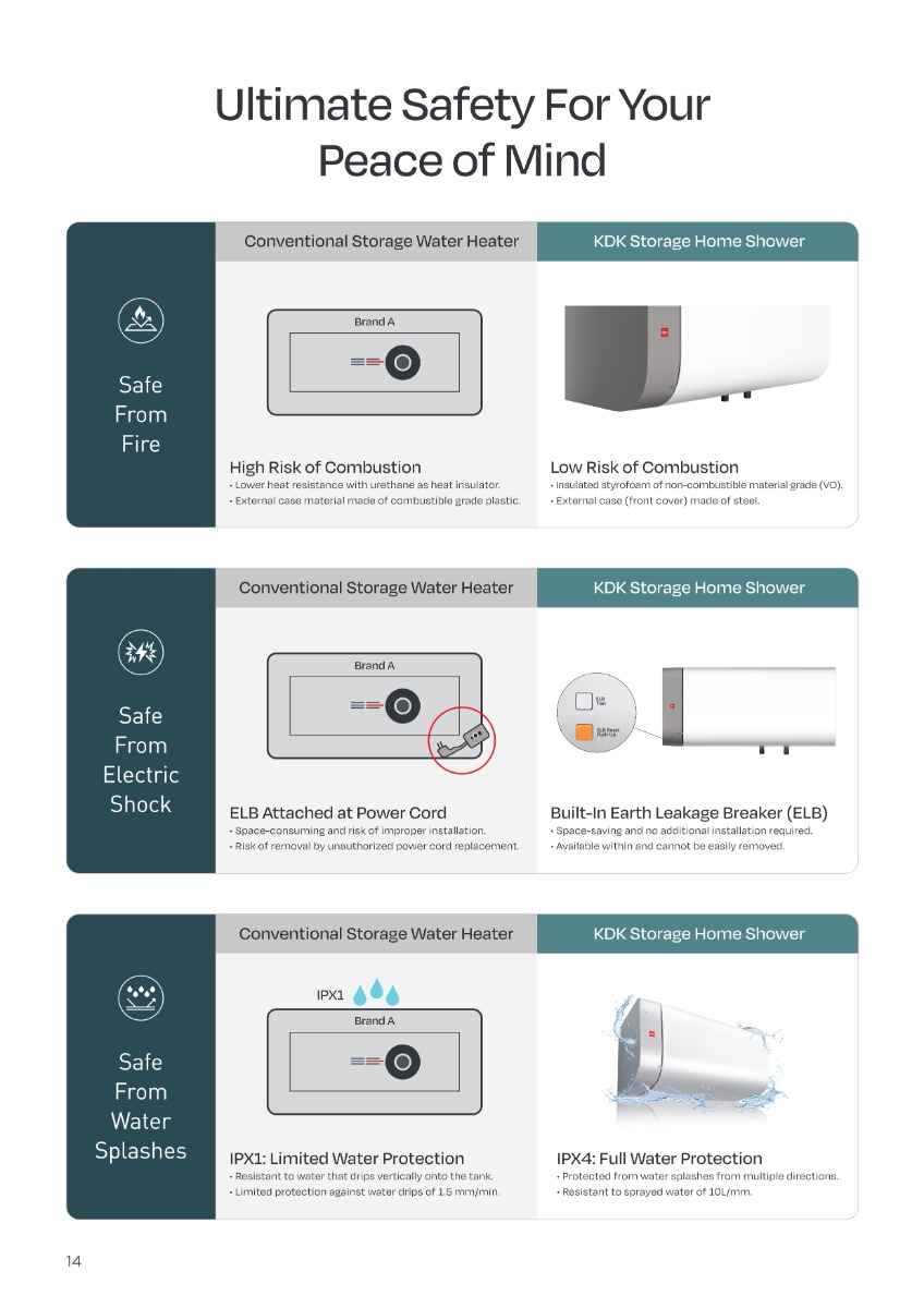- Built-in Earth Leakage Breaker (ELB) to safeguard against electric shocks