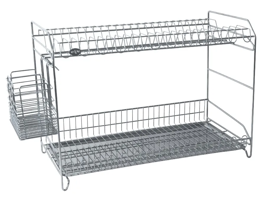 - 2-Tier Free Standing Dish Rack Come With Spoon and Fork Holder