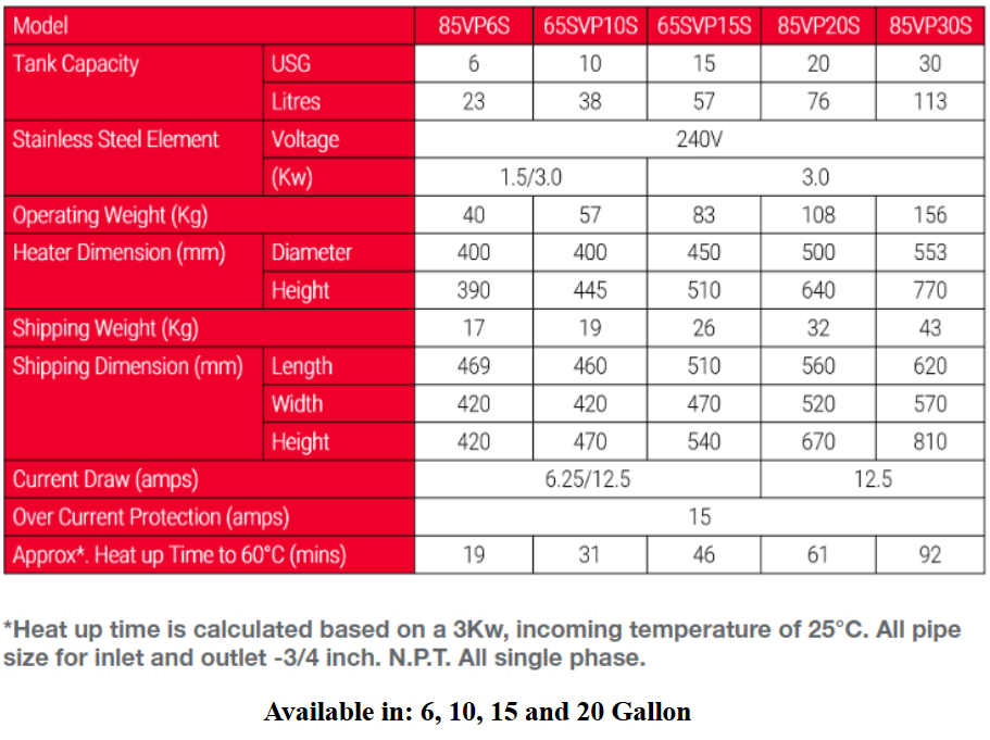 Anti-Corrosion Incoloy Heating Element to provide you long-lasting performance, as well as Magnesium Anode to provide added protection for your inner tank, thus providing your 85VP-65SVP Classic Electric Storage Water Heater with greater durability.