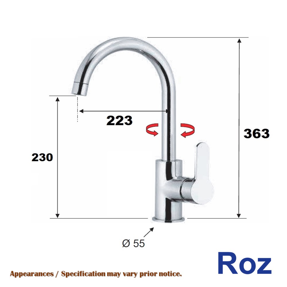 ROZ W72L XL C-SPOUT WINNER SINK MIXER CP