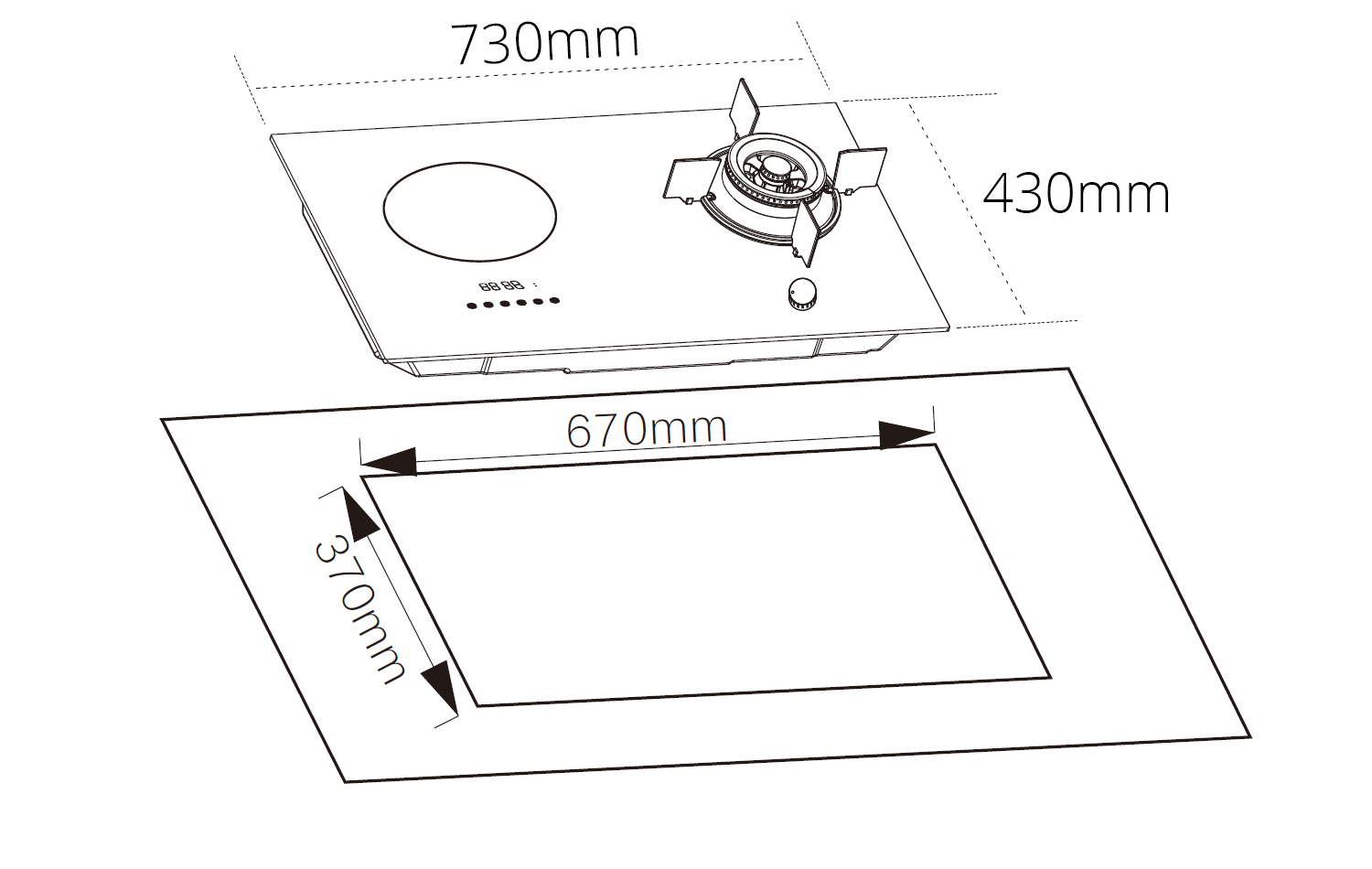 Uno UK7338 Gas-Induction Hybrid Glass Hob
